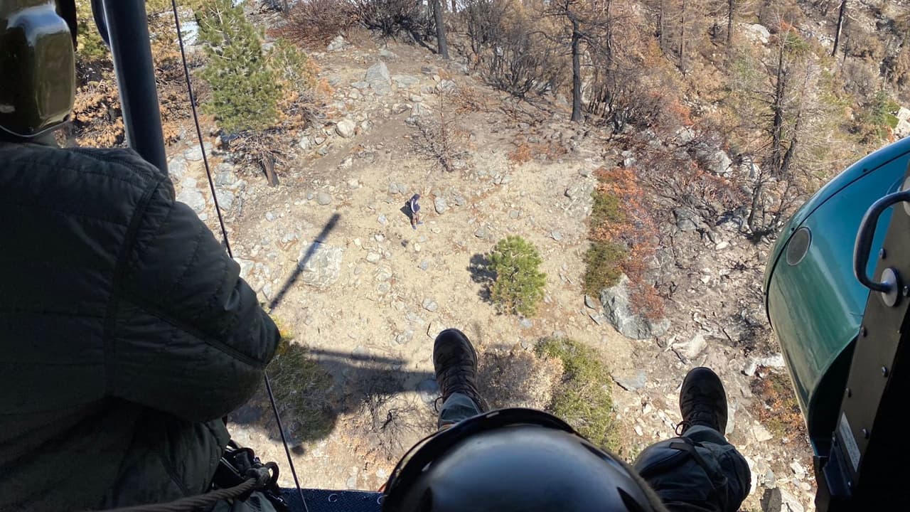 El equipo de rescate "comenzó a buscar en el área de Twin Peaks East y Triplet Rocks donde volaron bajo y cerca de la montaña. A través de la niebla encontraron a Rene a salvo".