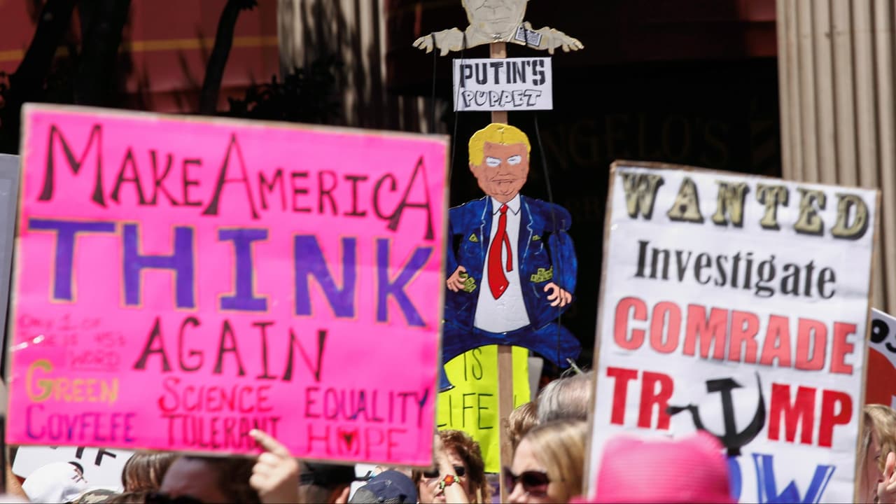 Activistas y residentes se movilizaron en la ciudad para pedirle al gobierno una comisión independiente que investigue los presuntos nexos de la campaña del mandatario con Rusia.