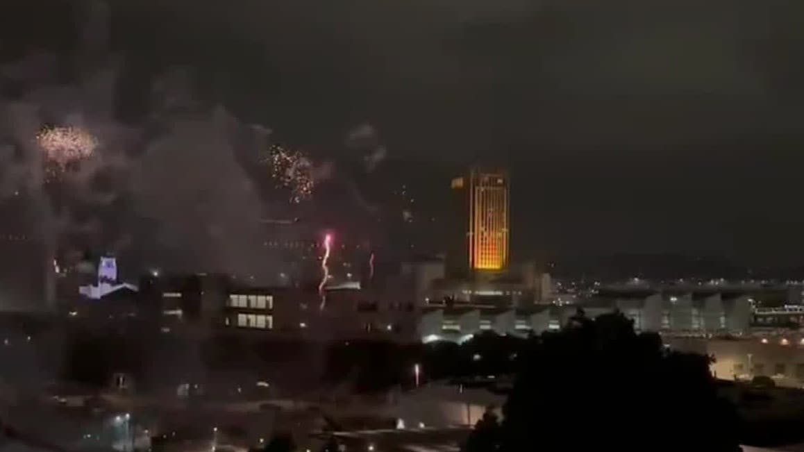 A las 10:45 p.m. del domingo 21 de enero, las paredes de algunos edificios en el centro de Los Ángeles se estremecieron con un espectáculo ilegal de fuegos artificiales.