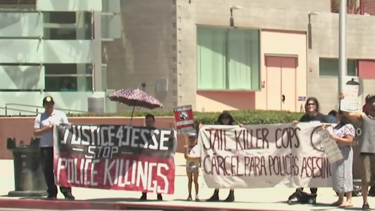 Familias de jóvenes que murieron a manos de oficiales protestaron frente a la estación de policía en Boyle Heights
