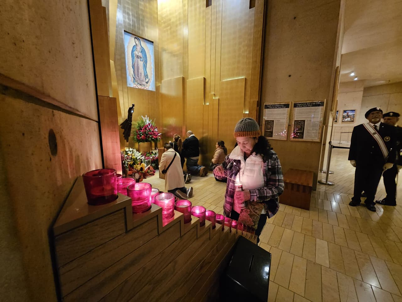 Fieles llegan a la Catedral de Nuestra Señora de Los Ángeles a celebrar a la Virgen de Guadalupe