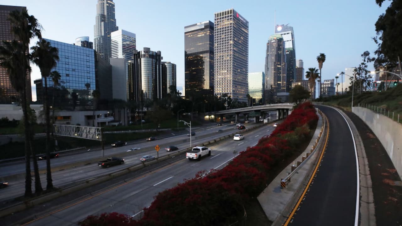 Fluidez en el tráfico vehicular sobre la autopista 405 de Los Ángeles en la mañana de este jueves