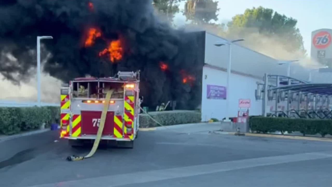 Fuego en 'car wash' amenaza gasolinera: la lucha contrarreloj de los bomberos de San Bernardino