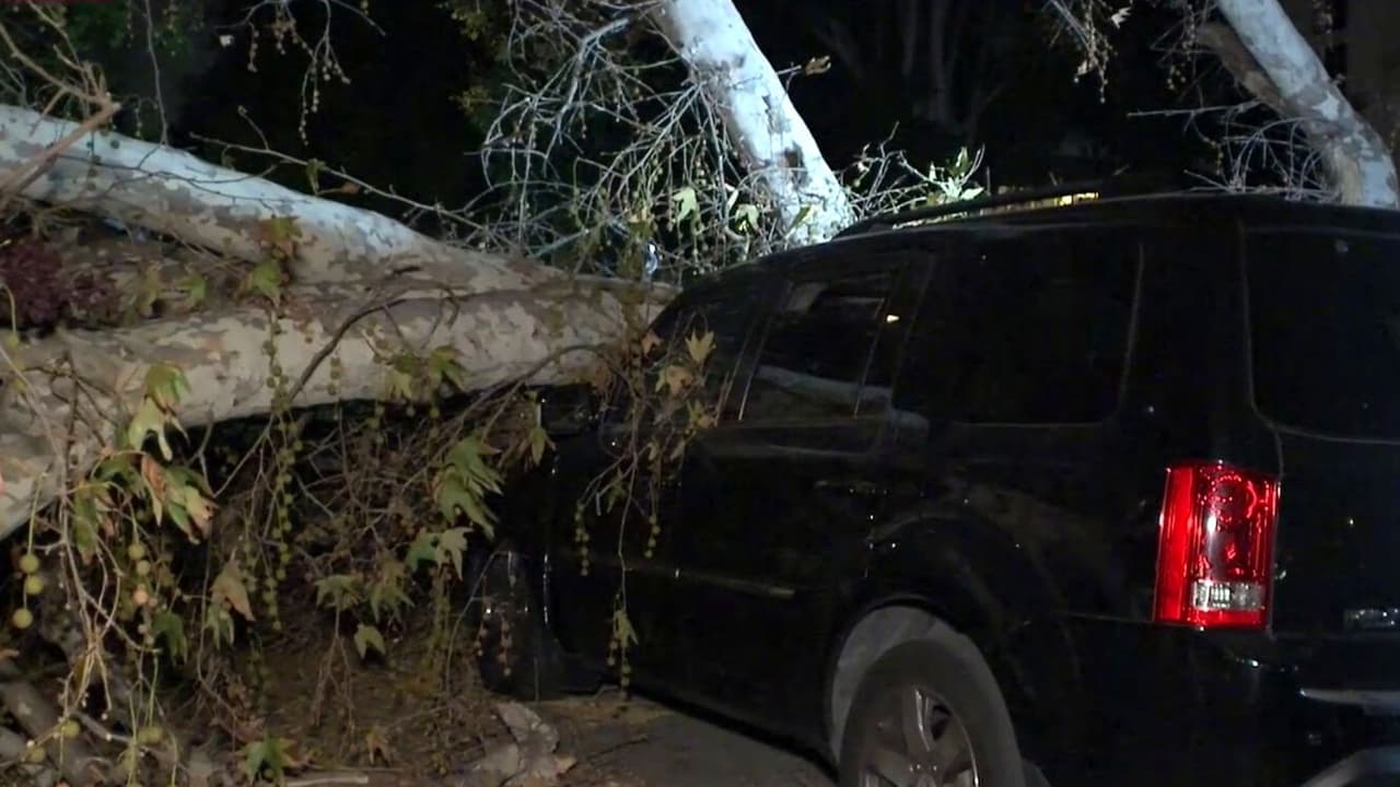 Fuertes vientos causan daños en North Hollywood: un árbol cayó sobre dos autos