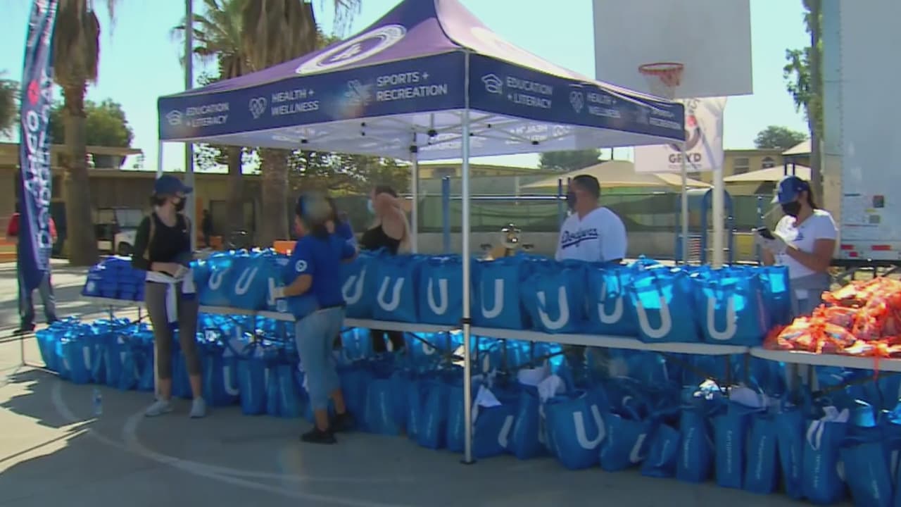 Fundación de los Dodgers entrega alimentos y artículos de higiene a habitantes del área de Watts