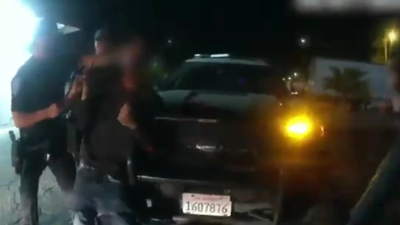 Tras ello otros dos oficiales del Departamento de Policía de San Bernardino se le acercaron al hombre e intentaron detenerlo, momento en el que el uso de la fuerza se hizo presente, pues le dispararon con una pistola taser y lo golpearon en 16 ocasiones, causando que huesos de sus dos piernas resultaron fracturados.