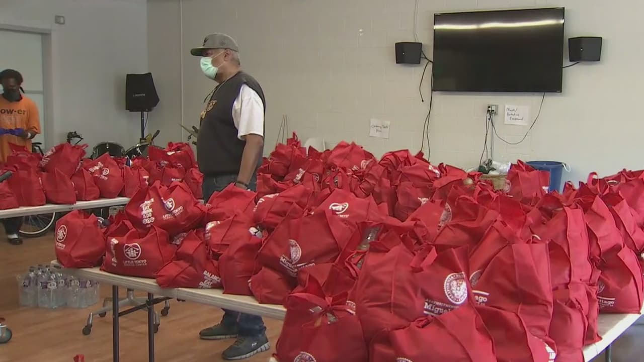 El asambleísta Miguel Santiago, junto a las organizaciones YMCA of Metropolitan Los Angeles y la red de acción comunitaria, llegaron hasta el vecindario de Skid Row para repartir bolsas y canastas de comida a personas sin hogar en la ciudad.