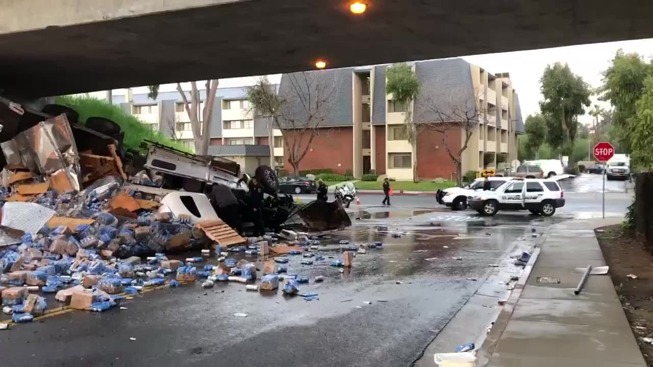 Gran plataforma de cerveza cierra autopista 10 en West Covina