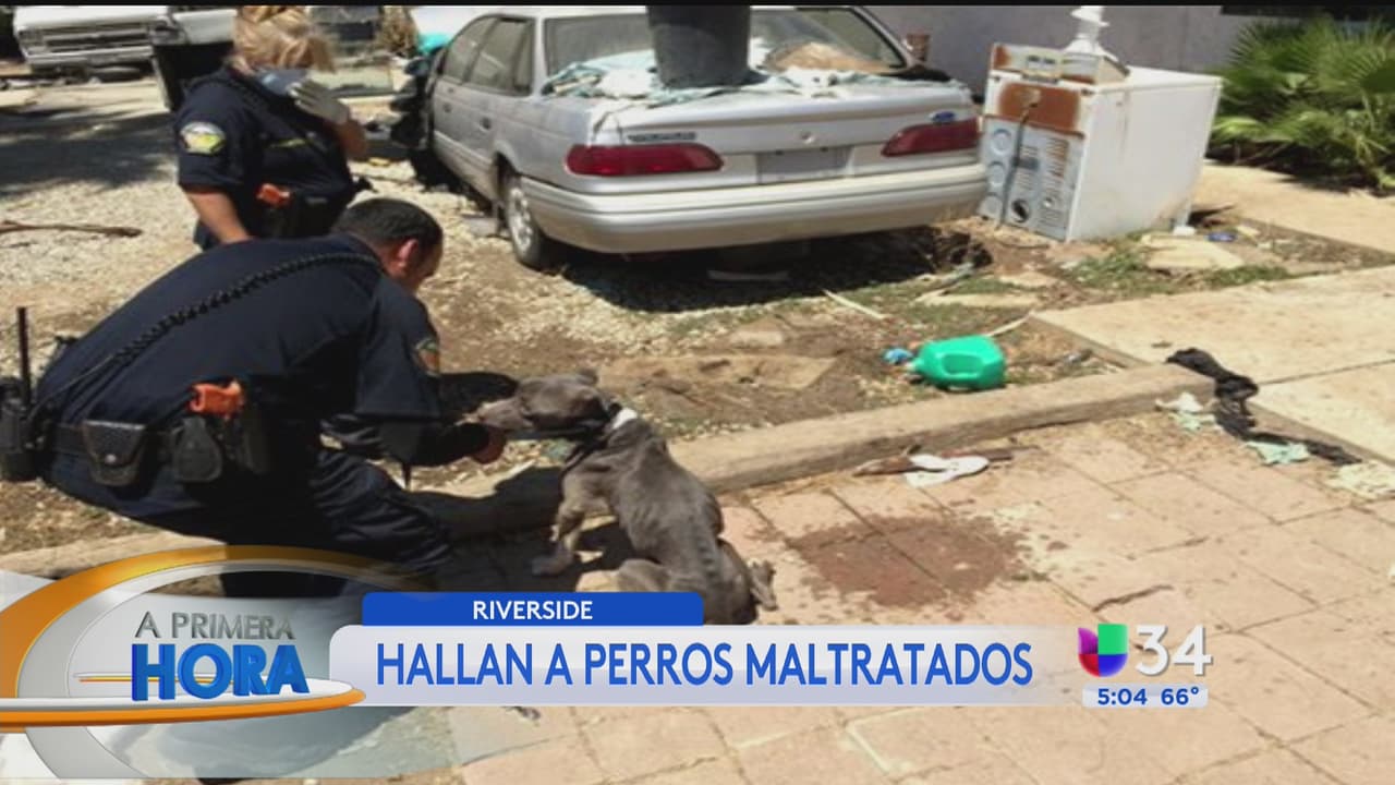 Las autoridades hallaron a 10 perros pitbull muertos y otros 25 mal nutridos en una casa en Riverside, a cuyo dueño podrían acusar de crueldad animal.