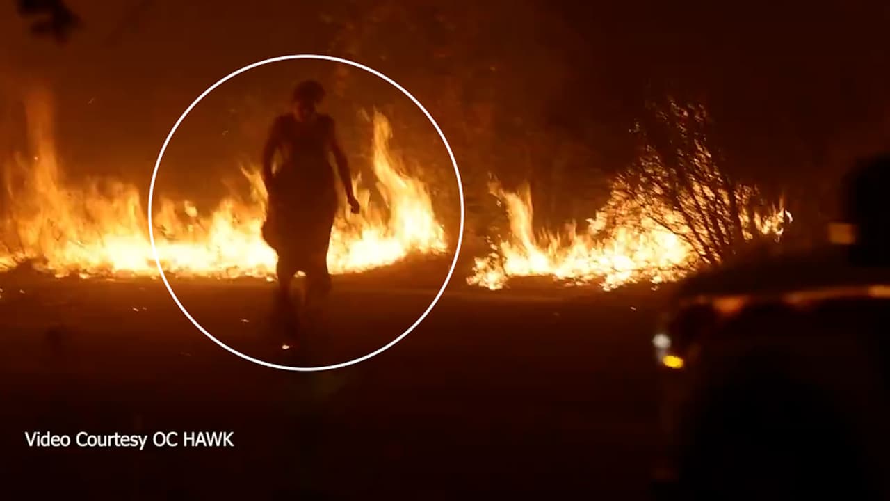 Hallan una mujer caminando en medio de las llamas del incendio Airport en California