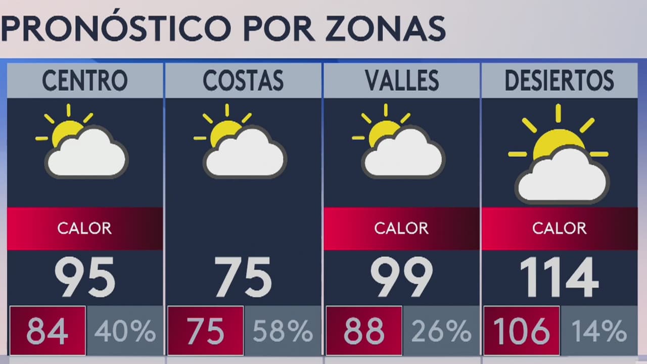 - Las áreas desérticas verán un máximo de 101°F este jueves y la región puede reportar temperaturas en los 113 °F durante varios días.