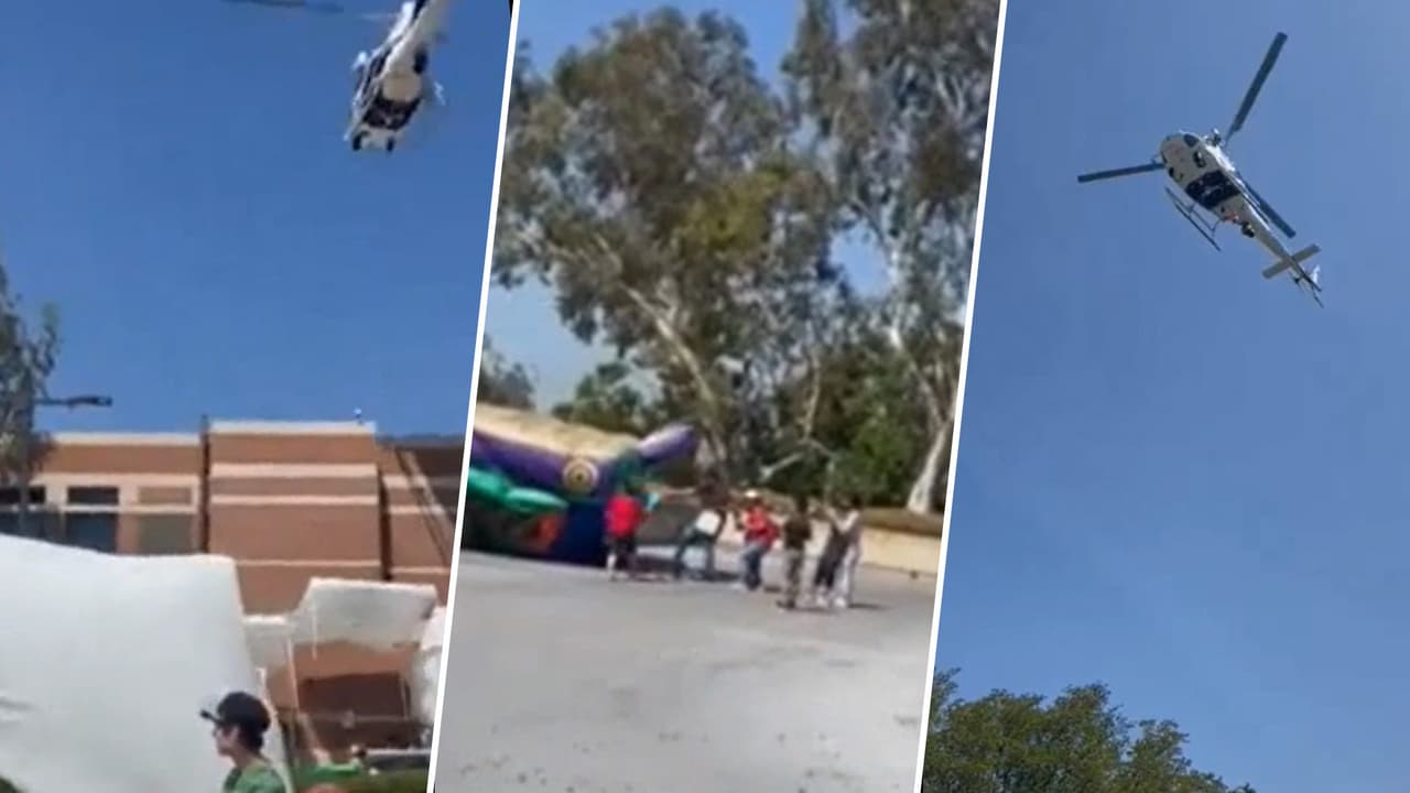 Helicóptero de la policía levanta inflable con niños adentro: fue captado en video