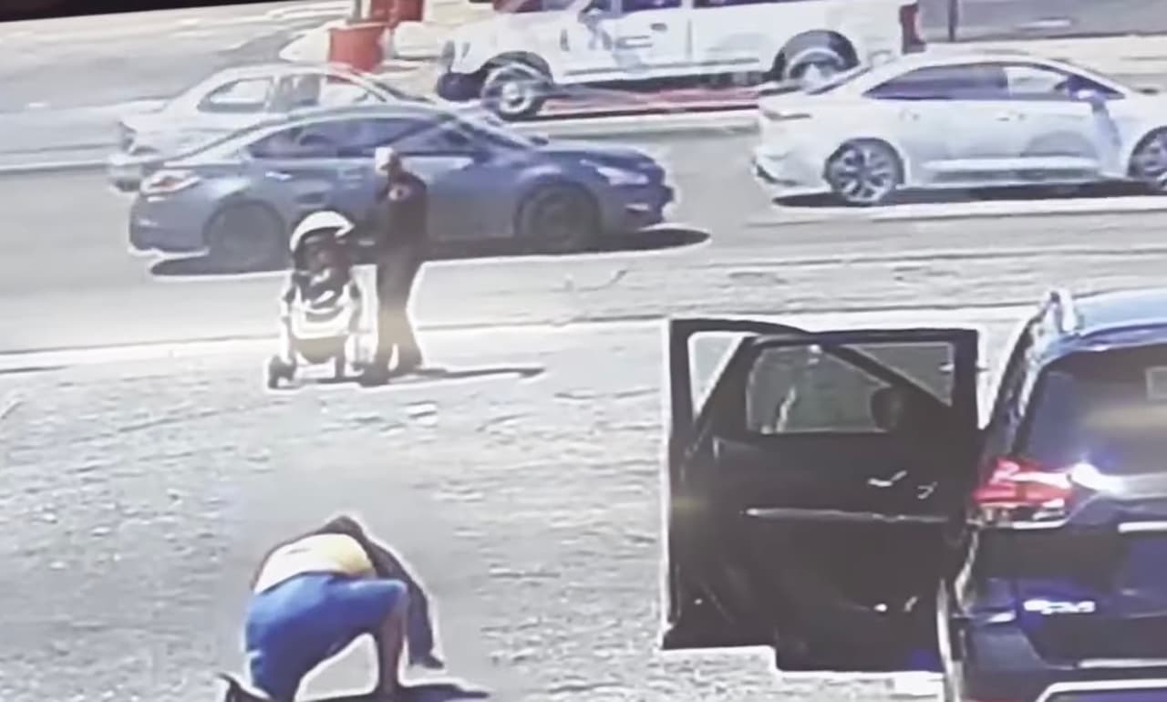 Héroe sin disfraz rescata al bebé en carriola que el viento se llevó contra el tráfico en California