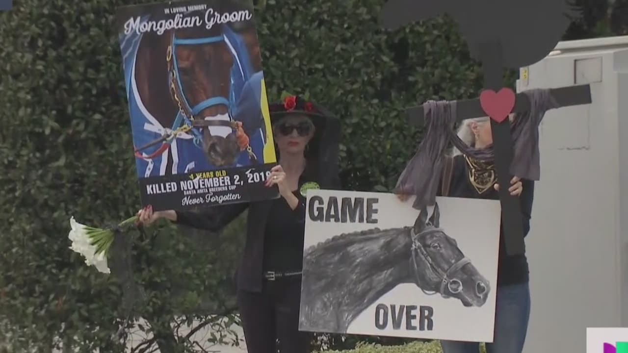 Decenas de manifestantes exigen el cierre de este parque de carreras equinas afirmando que es inhumano lo que están haciendo allí. Según informaron, desde diciembre de 2018 más de 40 de estos animales han sido sacrificados.
