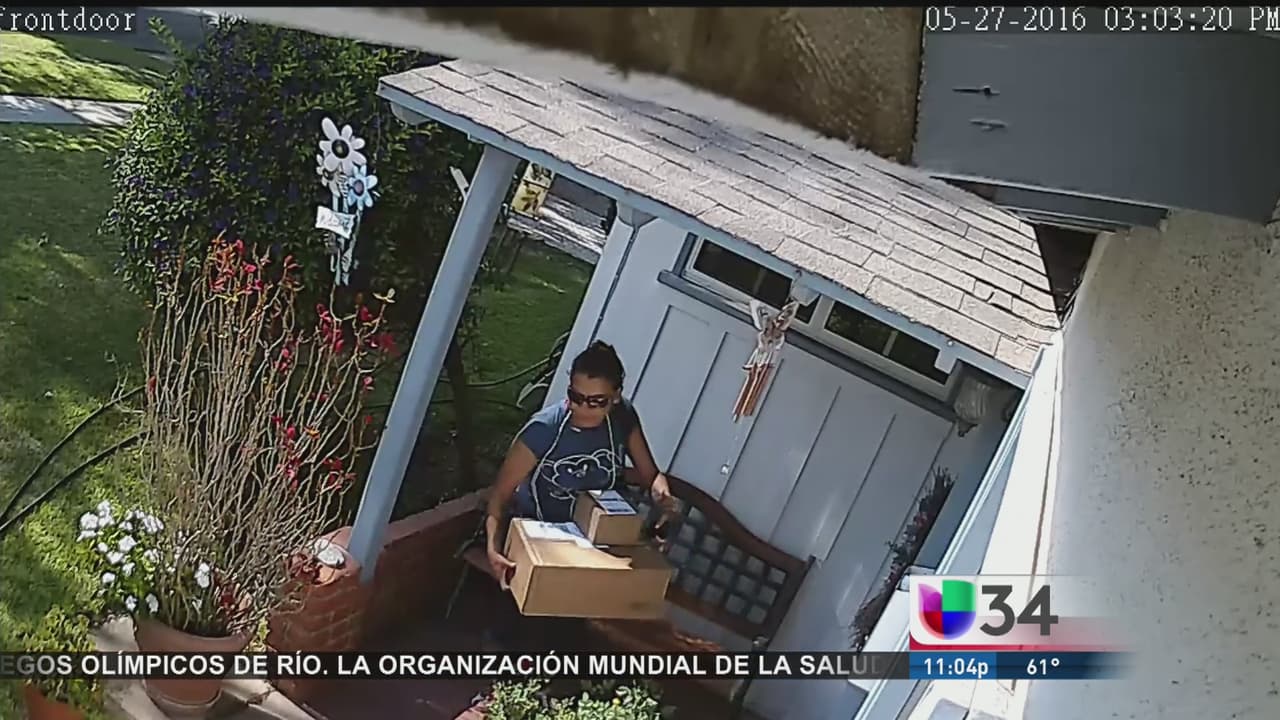 Blanca Alvarado fue captada en video llevándose varios paquetes de una residencia en Azusa y fue arrestada bajo cargos de robo.