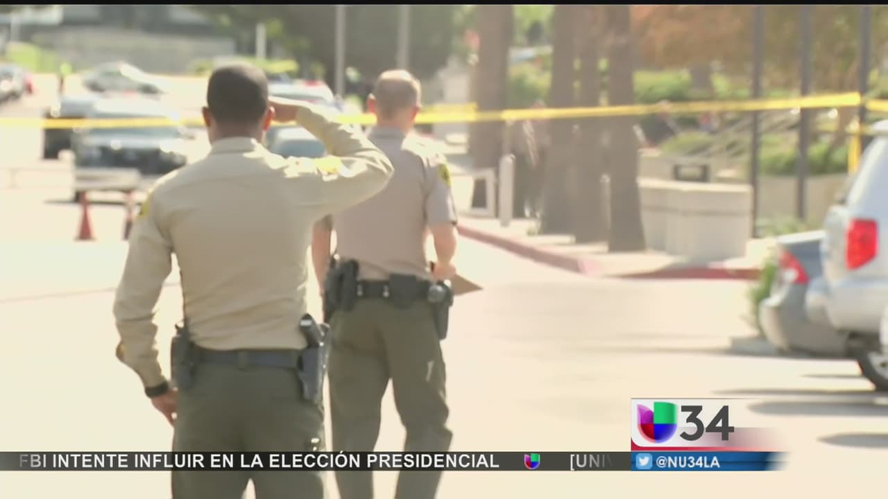 Una mujer resultó herida afuera de la corte de Chatsworth, donde era perseguida por su esposo armado con un cuchillo, el hombre fue abatido por la policía.