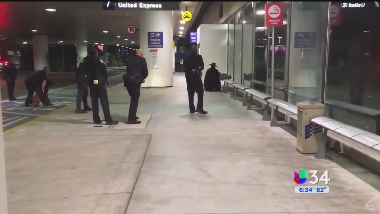 La Policía detuvo a un hombre disfrazado de zorro en el aeropuerto internacional de Los Ángeles antes de que las autoridades hicieran algunos reportes sobre supuestos disparos este domingo.