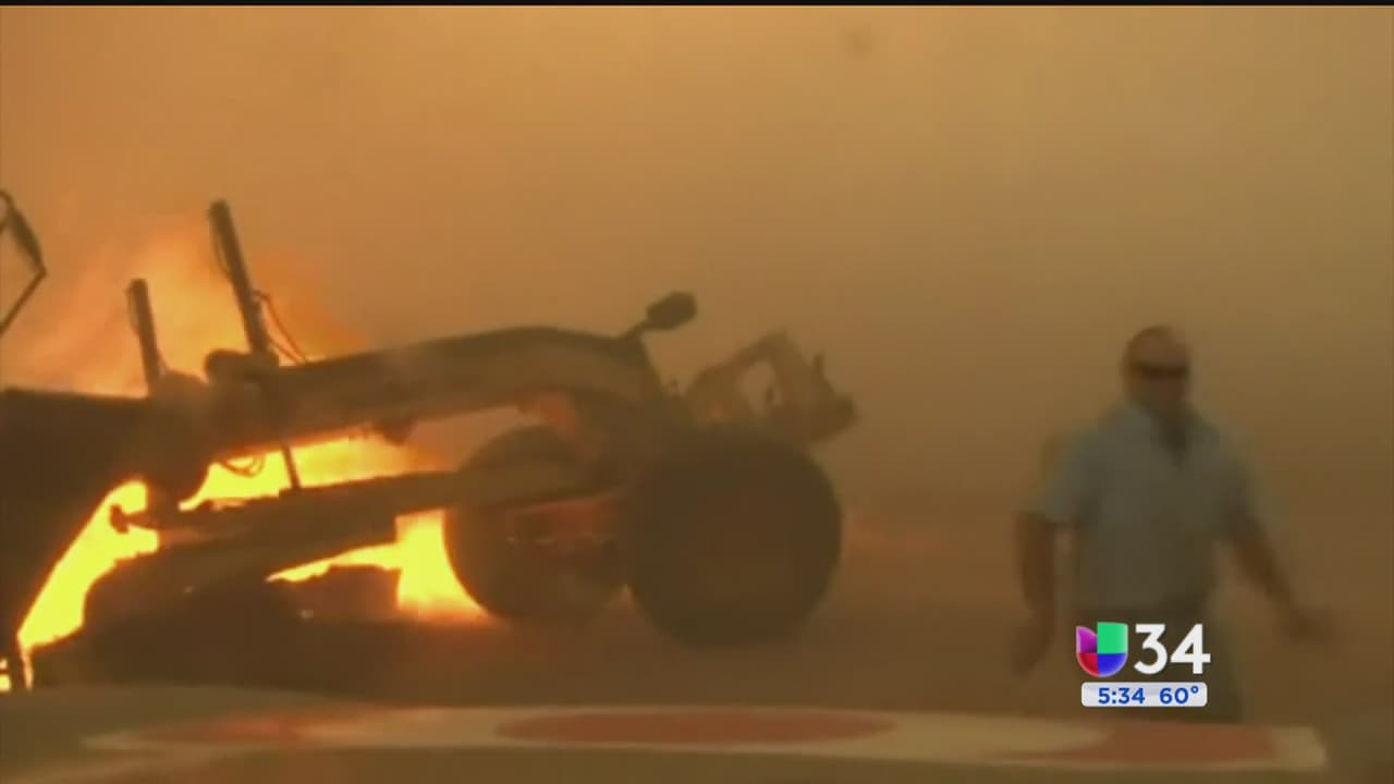Un equipo de noticias en Oklahoma logró ayudar a un hombre cuyo tractor fue consumido por un voraz incendio.