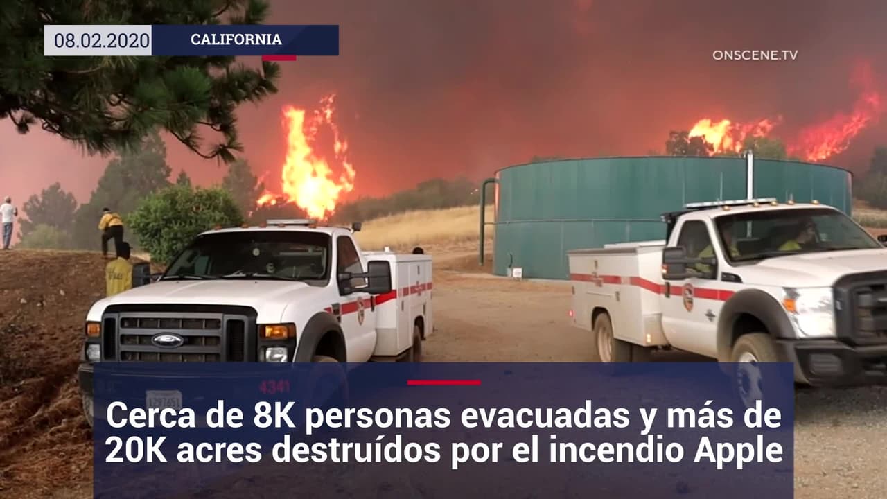 Cerca de 8,000 personas fueron evacuadas en la zona de Cherry Valley debido a la rápida propagación del incendio Apple. Las autoridades temen que las condiciones del tiempo mantengan las llamas fuera de control.