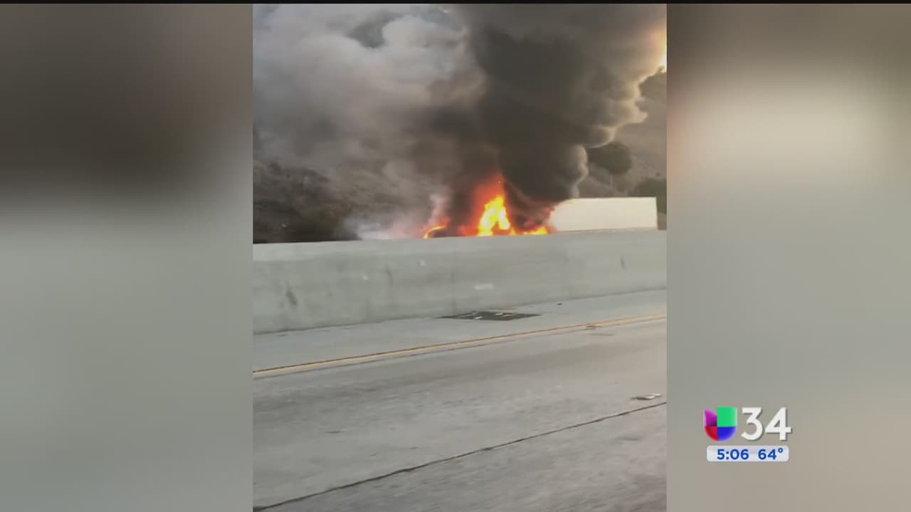 La autopista 60 Oeste estuvo paralizada por al menos 20 minutos luego de que se incendiara un tráiler en el área de City of Industry.