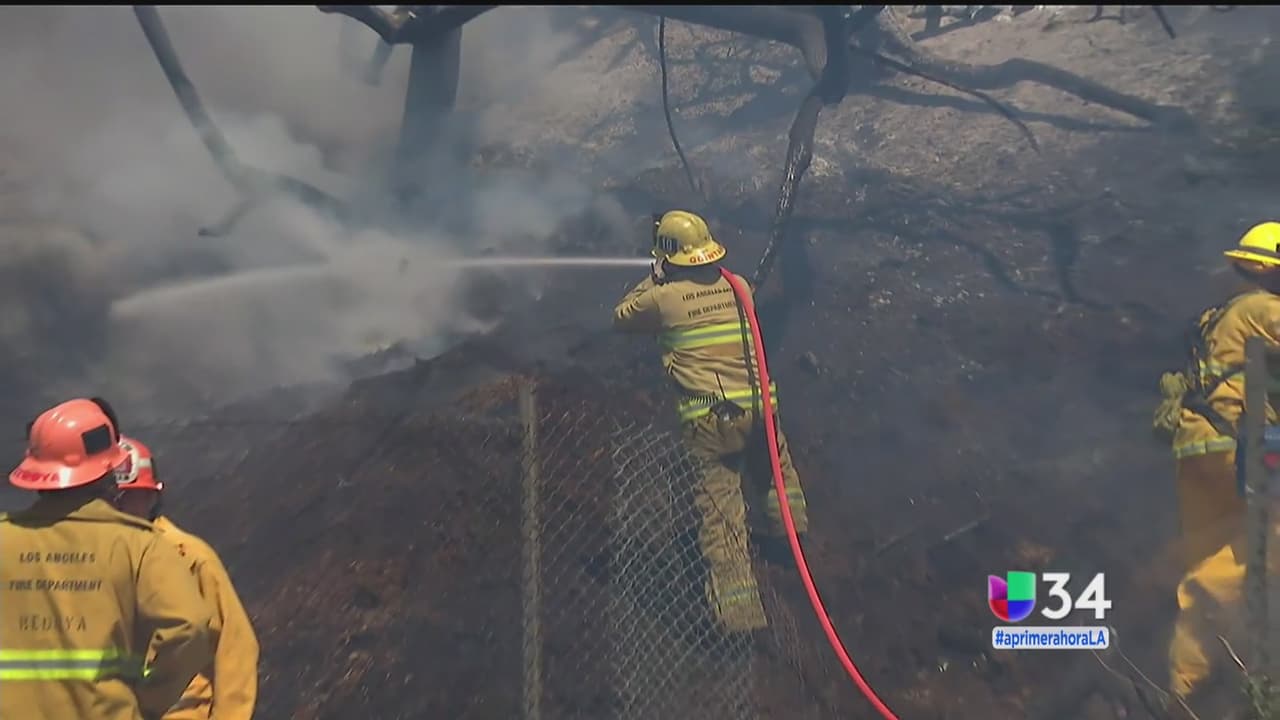 Amenazantes llamas destruyeron cinco estructuras, incluidas dos casas, en el área de Echo Park. Los vecinos intentaron combatir el fuego.
