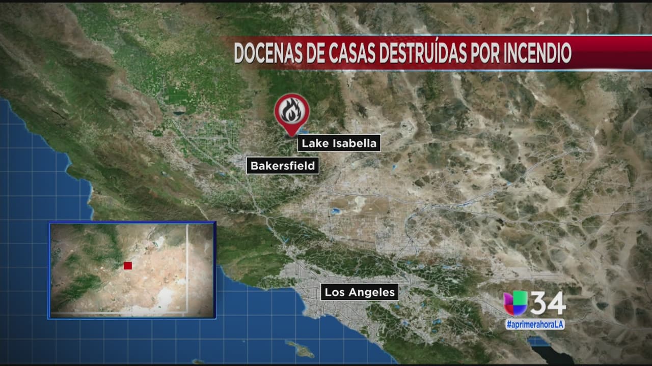 Se registra un incendio que ha quemado al menos 80 estructuras y amenaza al menos a 1500 más al noreste de Bakersfield.