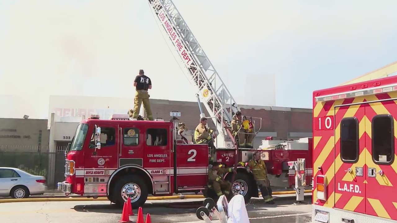 Incendio en edificio comercial en el centro de Los Ángeles, entre San Pedro y Wall Street