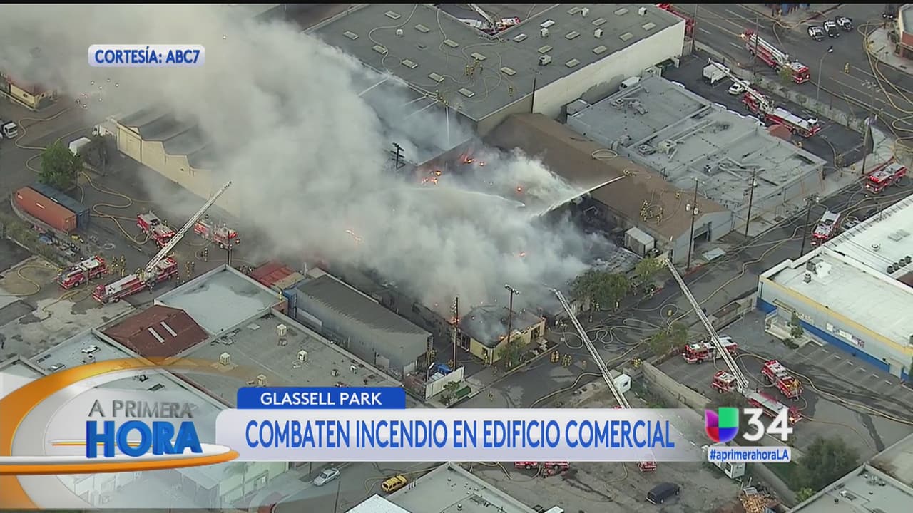 Bomberos combatieron un incendio que se desató dentro de un edificio comercial en la zona de Glassell Park.