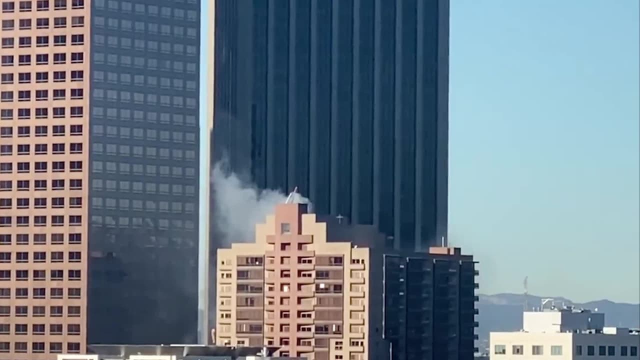Los bomberos de Los Ángeles trabajan contra reloj para rescatar a posibles personas atrapadas dentro del edificio de 27 pisos en donde estallaron las llamas. Hasta el momento no se reportan heridos ni la causa del incendio.