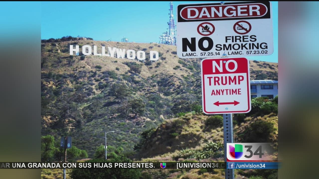 En California también se han colocado letreros en contra de Trump, como los que en abril de 2016 aparecieron en forma de señalamientos de tránsito: