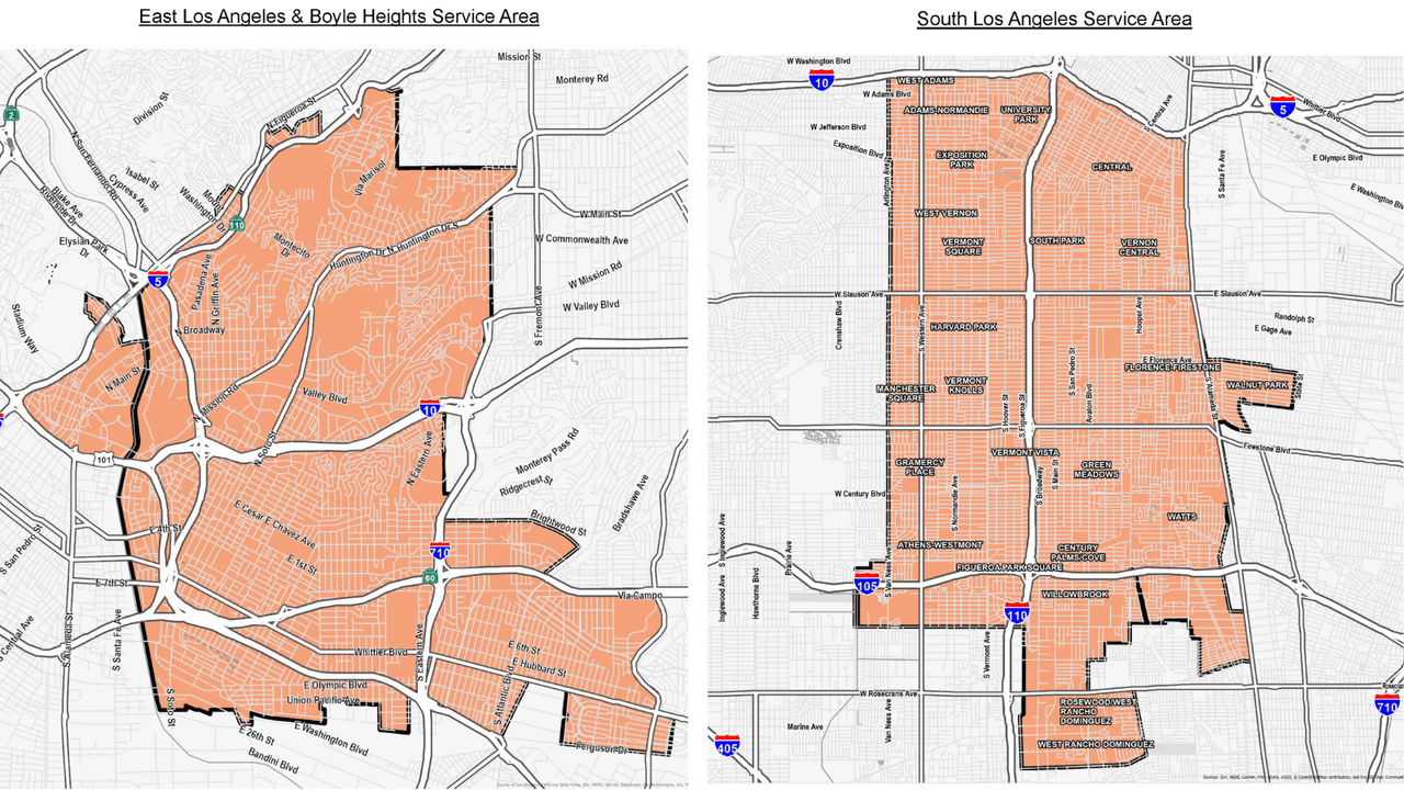 ¡La construcción comenzará pronto y el servicio comenzará a implementarse este otoño! Los hogares interesados en las dos áreas iniciales de planificación de servicios pueden inscribirse para recibir avisos informativos y ser notificados por WeLink cuando el servicio esté disponible en este enlace. Las comunidades en las áreas del Este de Los Ángeles, Boyle Heights y el Sur de Los Ángeles incluyen: