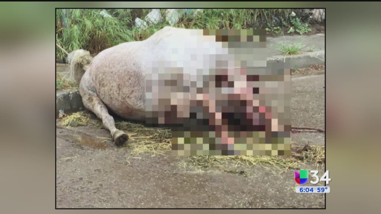 La policía investiga el hallazgo de un caballo muerto con la cola atada a un poste de teléfono en la ciudad de Sylmar.