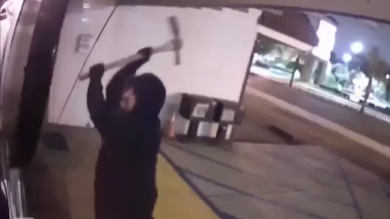 El sujeto, vestido de negro, encapuchado y armado con un objeto metálico, quedó captado en video en el momento en que llegó al establecimiento y comenzó a dañar los cristales. Las autoridades creen que por una de las ventanas rotas ingresó el artefacto explosivo tipo molotov que generó las llamas.