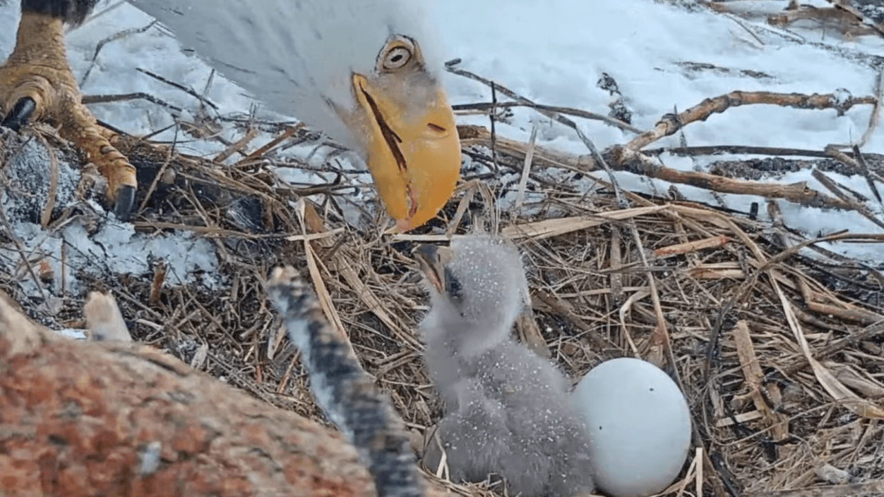 Los amigos de Big Bear Valley reportaron que el primer polluelo eclosionó el 3/3 a las 4:14 pm. Mientras el segundo huevo tiene una incubación retrasada. De acuerdo con los expertos, los huevos a eclosionar alrededor del día 38-39.