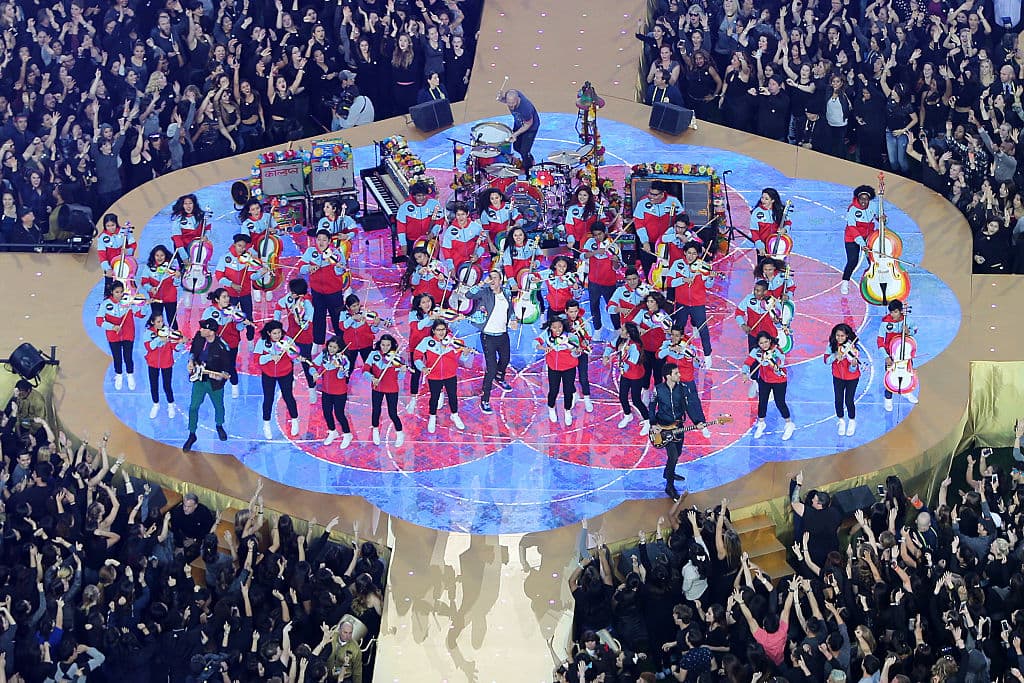 Más de 40 jóvenes de Los Ángeles, muchos de ellos hispanos, pusieron ritmo al Super Bowl junto a Cold Play, Bruno Mars y Beyoncé