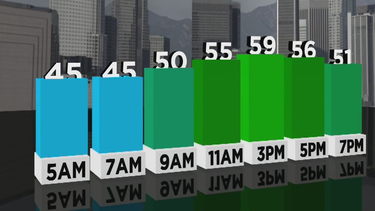 Jueves de cielo despejado, sol, mucho viento y frío en Los Ángeles