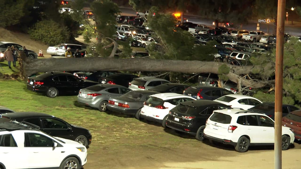 Un árbol de entre 40 y 50 pies de altura cayó este miércoles en un estacionamiento de Griffith Park dañando al menos 30 carros. Una persona resultó herida. Video captado en el lugar muestra la magnitud de los daños.