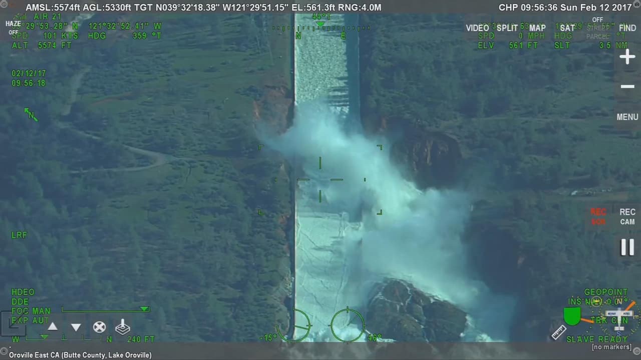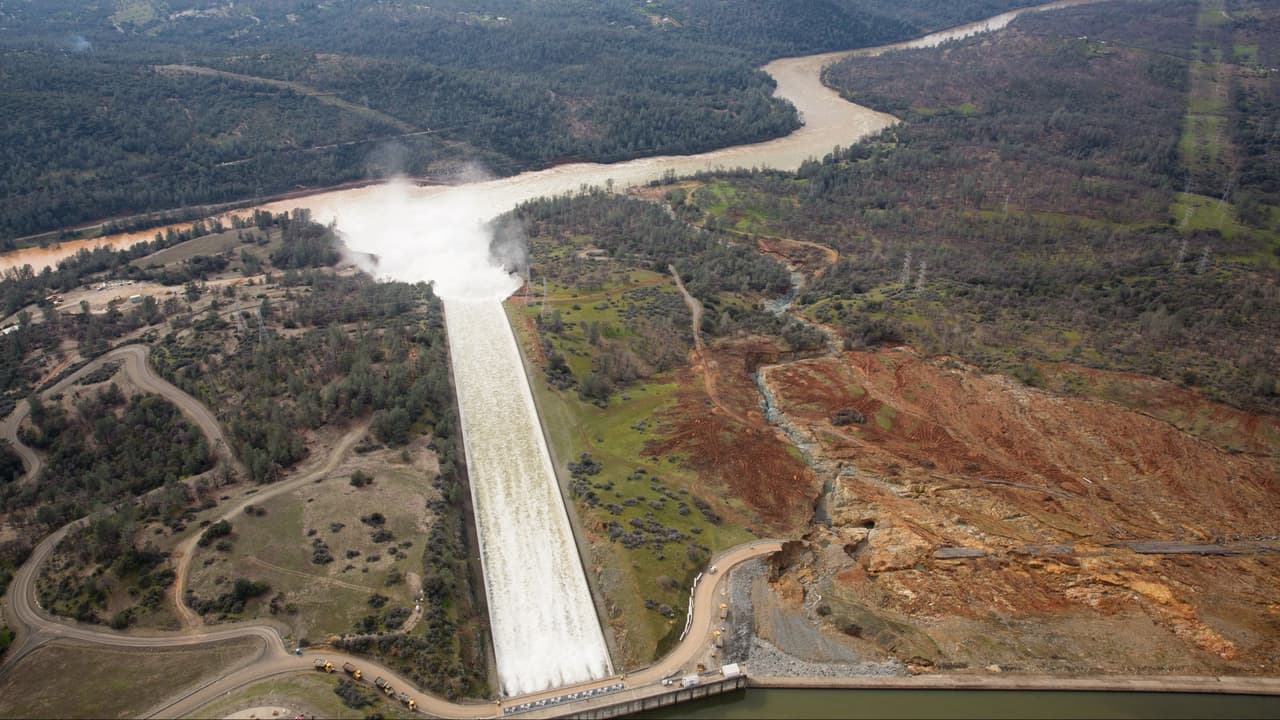 La represa Oroville, la más alta del país, ha estado recibiendo agua sin cesar durante una intensa temporada de lluvias, hecho que llevó el embalse hasta sus máximos. Para impedir que rebosara –lo que finalmente ocurrió- se realizaron sueltas controladas de agua por la rampa principal, donde apareció una gran zanja que inquietó a los técnicos.