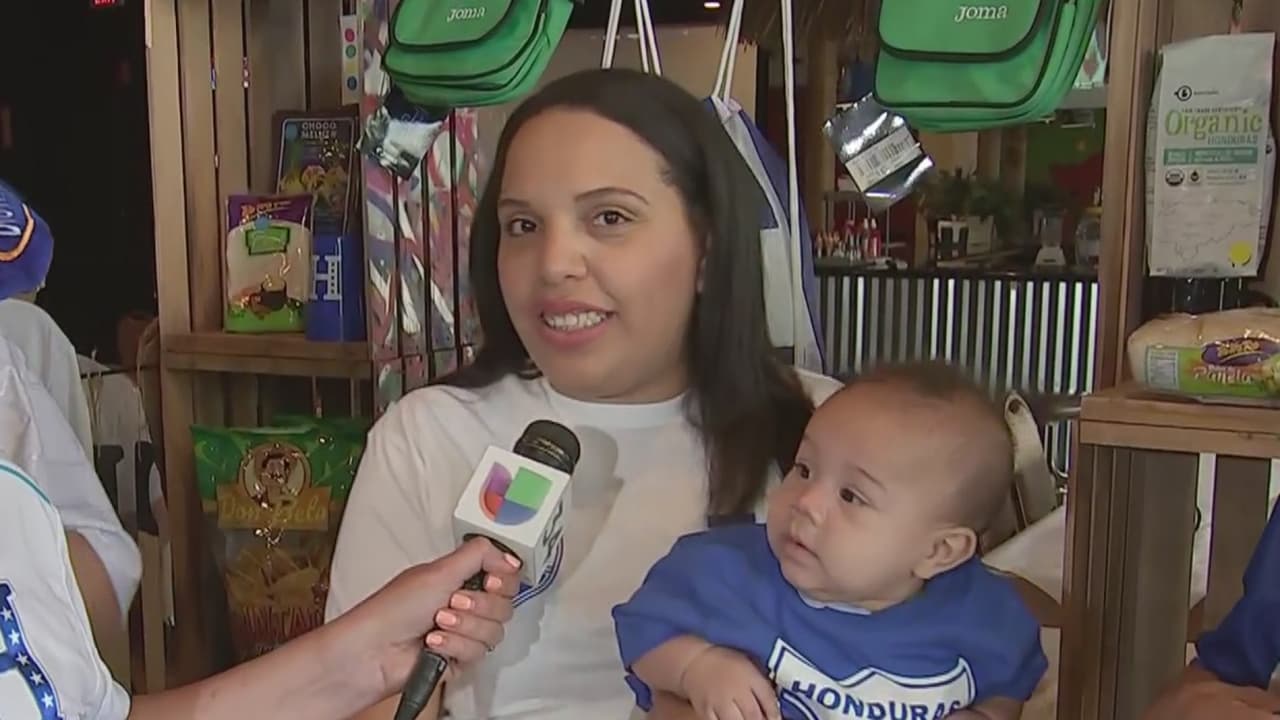Miembros de la comunidad calientan motores en el restaurante Honduras Kitchen y alientan a su selección en la última ronda del grupo C de la Copa Oro. Aunque el grupo ya fue eliminado de la competencia, los fanáticos aún esperan celebrar una victoria.