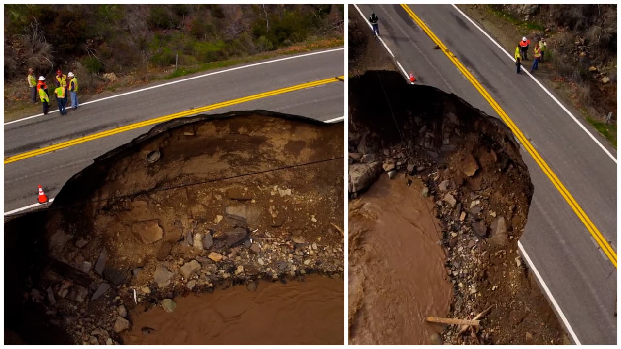 La ruta 33, cerca de Ojai, CA colapso por fuertes lluvias