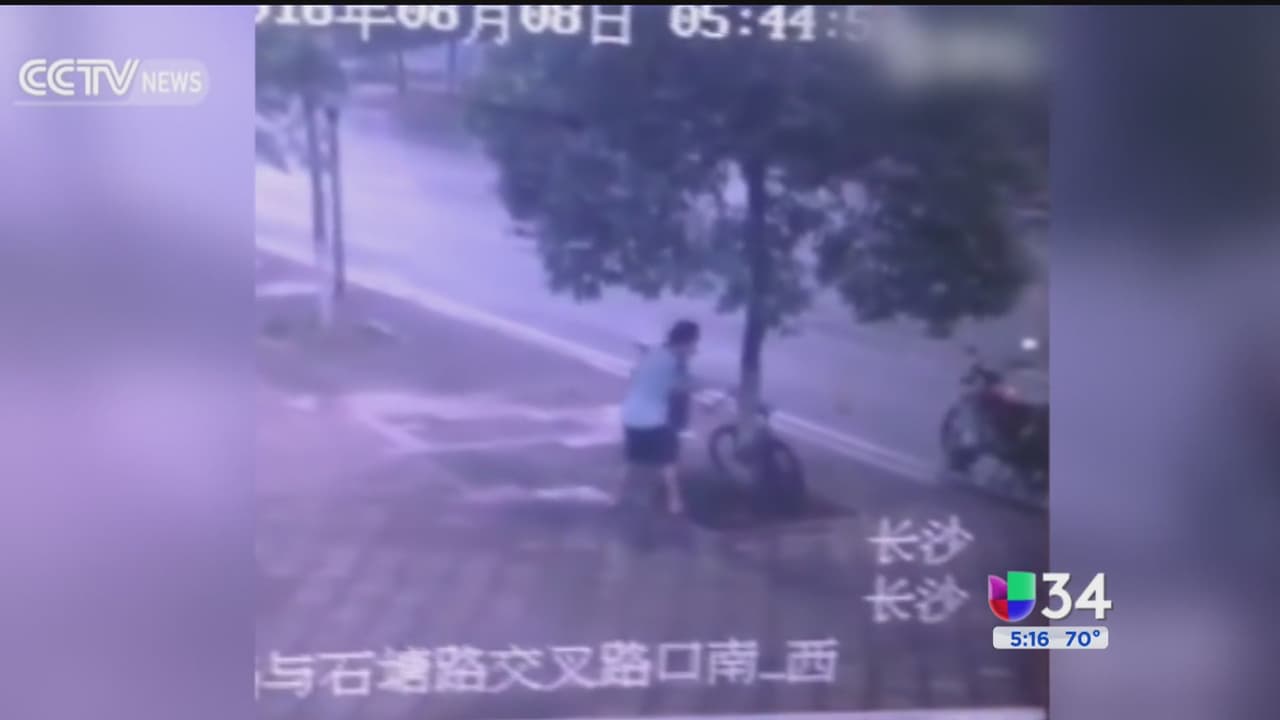 Un video muestra el momento en el que un individuo corta un árbol para poder robarse una bicicleta.