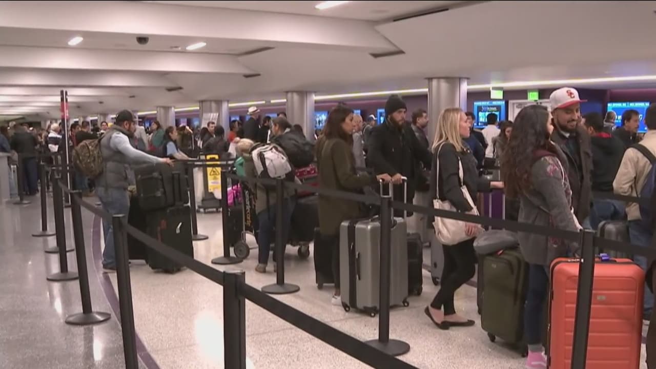 Largas filas, congestión y horas de espera para los viajeros en el aeropuerto de Los Ángeles