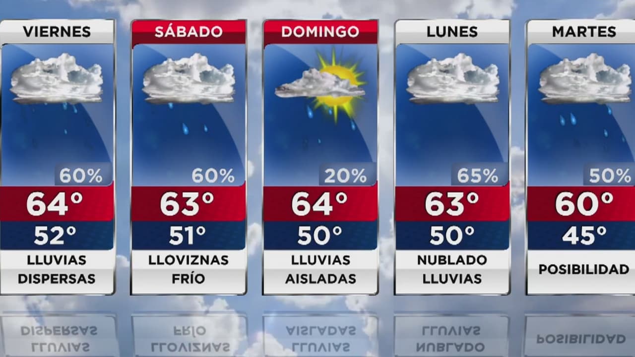 Las temperaturas máximas se ubicarán en los 64 grados Fahrenheit, las mínimas rondarán los 52 y los cielos permanecerán mayormente nublados. Condiciones similares se pronostican para el fin de semana que se aproxima.