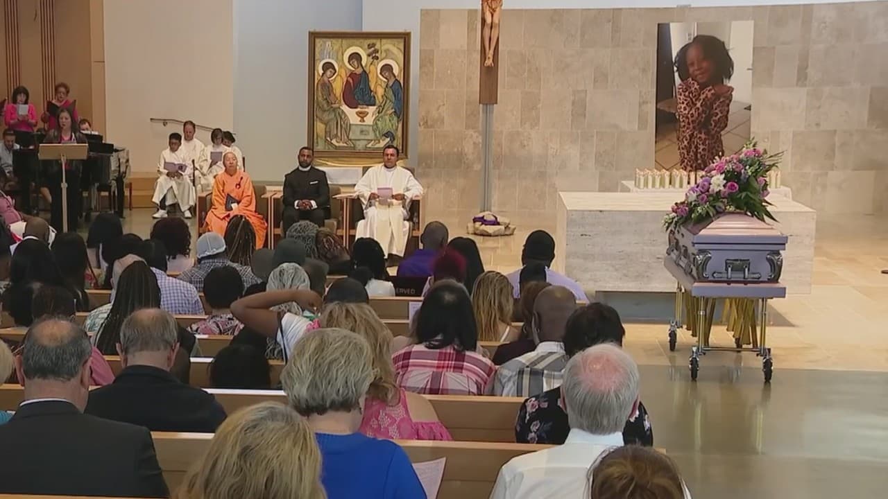 Una gran multitud asistió al funeral de Trinity Love Jones realizado en la iglesia San Juan Vianney, en Hacienda Heights. La madre de la menor y su novio son sospechosos de su asesinato y ya fueron arrestados.