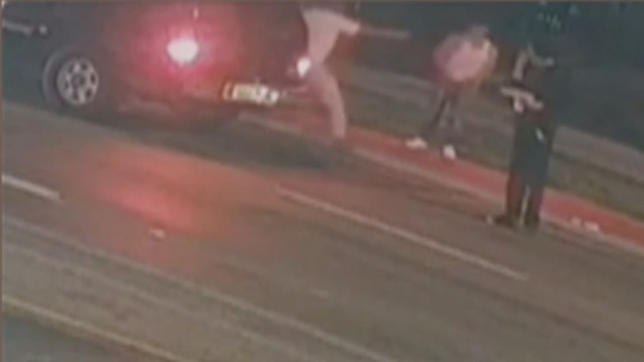 Un video de vigilancia publicado por el Departamento de Policía de Los Ángeles, muestra el momento en el que una pareja de sospechosos, descritos como afroamericanos, se baja de un carro Toyota Avalon y se dirigen hacia un vendedor ambulante que empujaba su carrito por el andén de la calle.