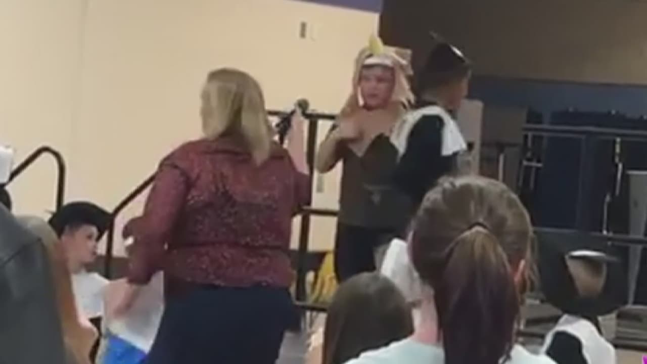 El video muestra cuando la maestra retira el micrófono a un niño durante una presentación por el Día de Acción de Gracias. La grabación ha generado críticas en las redes.