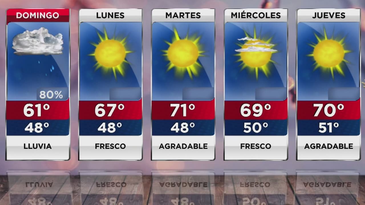 Las temperaturas máximas llegarán a los 61 grados Fahrenheit, mientras que las mínimas se ubicarán en los 48. La probabilidad de aguaceros es de 80% y los vientos serán constantes.