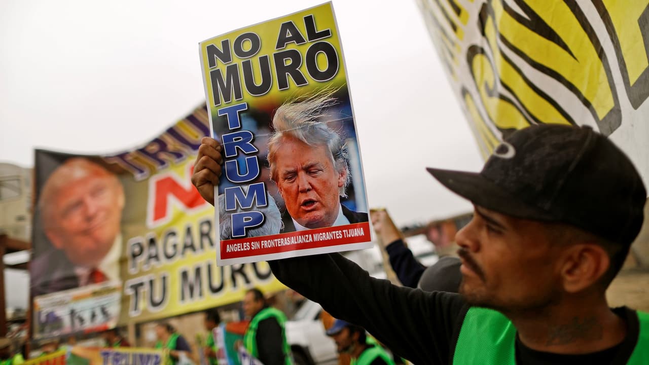 En medio de montículos de desechos decenas de manifestantes se reunieron para protestar en el lado mexicano de la frontera de San Diego con Tijuana, donde se ubican los prototipos del muro que visitó este martes el presidente Donald Trump. Ellos consideran que una pared fronteriza sería un desperdicio de dinero.