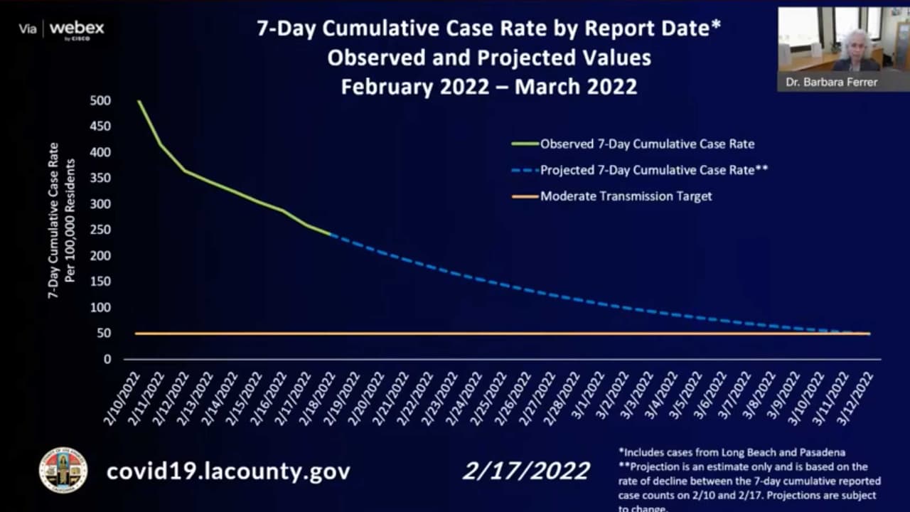 Durante una conferencia de prensa este jueves, la directora de salud Bárbara Ferrer, dijo que la proyección de tasa de transmisión de casos dentro del condado podría permitir que se levantara la orden del uso de mascarillas en interiores a finales de marzo.