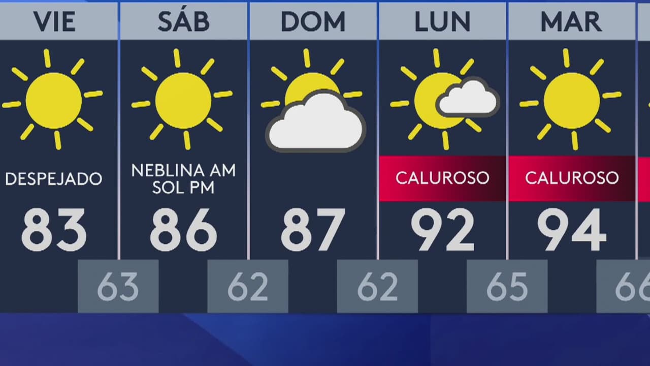 Las temperaturas máximas llegarán a los 83 grados Fahrenheit y las mínimas se ubicarán en los 63. Los cielos se mantendrán con poca nubosidad y los vientos soplarán a velocidades moderadas.